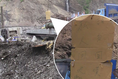 聽說堤防將內縮,可能被波及的居民立刻立起告示牌 |