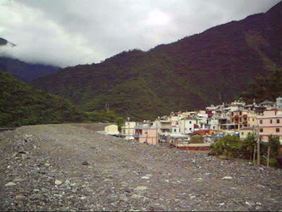 空拍來義東部落。明顯看到東部落被洪水吞噬及「最後防線」被摧毀 (圖/成功大學防災研究中心) |
