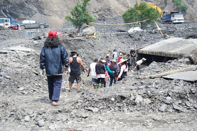 被洪水吞噬的石版屋文物館(來義鄉原住民文物館 提供) |