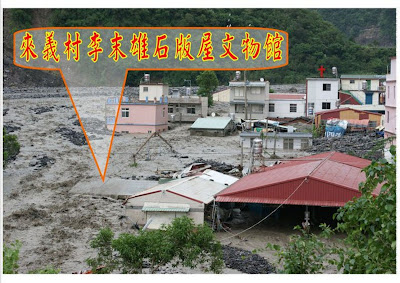 | 被洪水吞噬的石版屋文物館(來義鄉原住民文物館 提供) |
