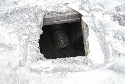 | 從屋頂的小洞可窺探屋內的狀況,慘不忍睹。(來義鄉原住民文物館 提供) |