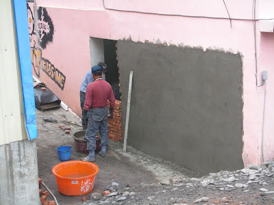 沙土要回填了,居民疊磚將一樓的窗戶擊出入口封住,未來就當成地下室使