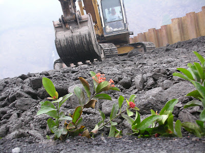 上,他仍指著地上為被全埋得花欉說:「那是我媽媽種的。」