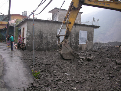 八八風災後大量的土石堆積河床,使得河床上升幾乎與東部落的路面同高,今年的凡那比又帶下大量的土石,將東部落幾乎埋了一樓高。因此,除了挖開部份民宅讓民眾進去取出財物之後,便將以砂石回填,墊高東部落的高度,如此一來,使得部份民宅二樓變一樓,而平房則埋入地底。