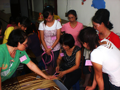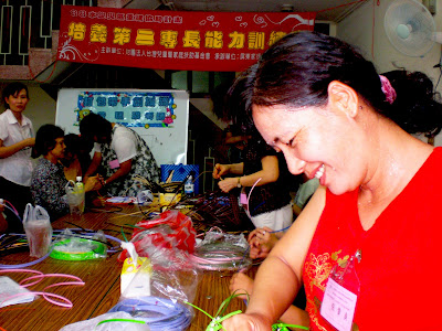 黃佩琳老師指導林邊鄉的學員們編織的課程。(圖:家扶林邊彩虹工作站提供) |