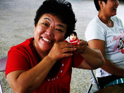染布課程的指導老師鍾展雄,是鄰近新埤鄉建功村的村長,在八八風災當時,開著小貨車奔波往返於災區之間,他回憶當時情景說:「沒有在現地生活的,真的很難理解災民的感受,眼淚真的會掉下來。」對於災民的眼淚,鍾村長感同身受。這次應家扶的邀請擔任講師,他以台語「打斷手骨顛倒勇」來勉勵這些災區的學員。編織課程的老師黃佩琳則表示,學員們的熱情及好學的精神讓她好感動,原先因路程遙遠不大願意前來,後來幾乎都是花上兩倍的時間在陪伴及指導學員。