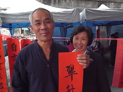 大師帶著學生揮毫贈春聯,添年味,也是文化傳承。(攝影/李孟霖) |